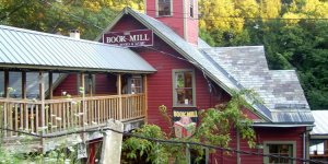 of course) is The Montague Bookmill in Montague, MA. A former mill situated on the banks of the Sawmill River, this used bookstore is in a positively idyllic location. Part of a small complex of stores, the Bookmill compound is also home to Turn It Up! (a music store), an antique shop, an art studio, the Night Kitchen (a restaurant), and, my personal favorite, the Lady Killigrew Cafe which is connected to the Bookmill itself.