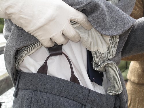 This picture is what started me on my recent suspender musings. I know, there’s not even a display of skin, but it was something about the way the suspenders peek out and the hint of tie, and let’s face it, this could probably be either a man or a woman, which is kind of sexy in itself.