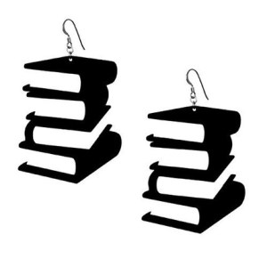 Vinyl Hardcover Book Stack Earrings, Necklace, & Pin