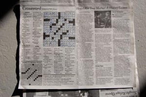 The whole job took a good amount of field research. Most mornings I was up at the crack of dawn and raced downstairs to get one of the few papers available at the local bodega. Then, I would present her with her paper, carefully watch her go through each section, noting how she designed her reading habits to arrive at the crossword puzzle last. Some days she would fold the arts section up and stuff it in her bag before heading on the train. Other days, she would save it until she was ready for bed.